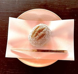 そして開炉に頂く「亥の子餅」は、亥の月、亥の日、亥の刻に大豆などを練りこんだ餅を食べて無病息災を願うという中国の習わし「亥の子」から来ています。日本では平安時代以降、宮中だけでなく武家にも広がりました。農村部でも以前から行われていた秋の収穫を祝う行事と結びつき広まりました。また、猪は子だくさんなので、その子供「うり坊」に似せた形で子孫繁栄の意味も込められています。この時期、皆さまもに無病息災、火伏せの願いを込めて、抹茶一服とともに「亥の子餅」を召し上がってみませんか?